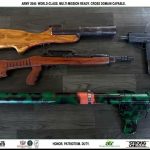 The seized weapons included three Cal. 30 sniper rifles, two grenade launchers, two M16A1 rifles, a Cal. 50 sniper rifle, a Cal. 30 Garand rifle, an M14 rifle, and a Cal. 30 Carbine M1 rifle.