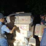 Authorities flagged down two suspicious minivans—a gray and a maroon vehicle—traveling towards Kalamansig, Sultan Kudarat. Upon inspection, officers discovered 46 boxes containing 2,300 reams of Berlin Red Cigarettes, which were being transported without the necessary documentation.