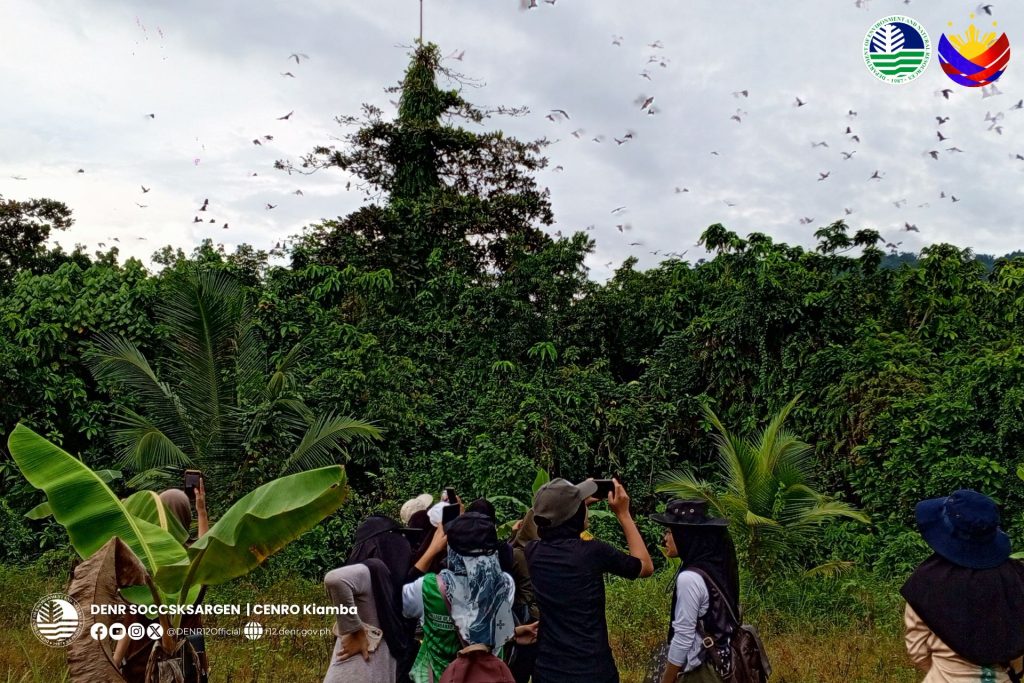 Meanwhile, coinciding with the educational tour, CENRO Kiamba also conducted a bat monitoring activity on April 11 at Barangay Pinol, Maitum, a recognized roosting site for two significant fruit bat species — the Large Flying Fox (Pteropus vampyrus) and the Island Flying Fox (Pteropus hypomelanus). Field observations estimated the local bat population at around 5,000 individuals, underscoring the area’s role as a vital habitat for these ecologically important species.
