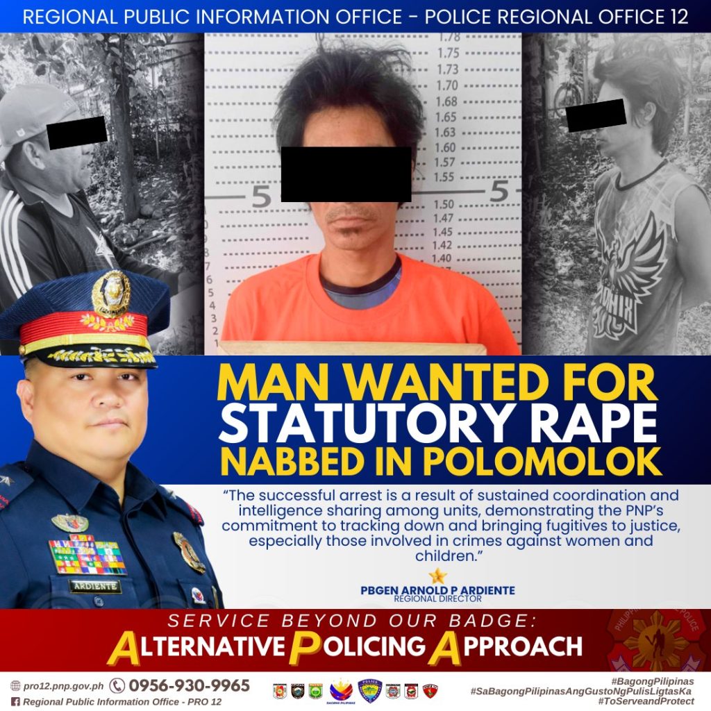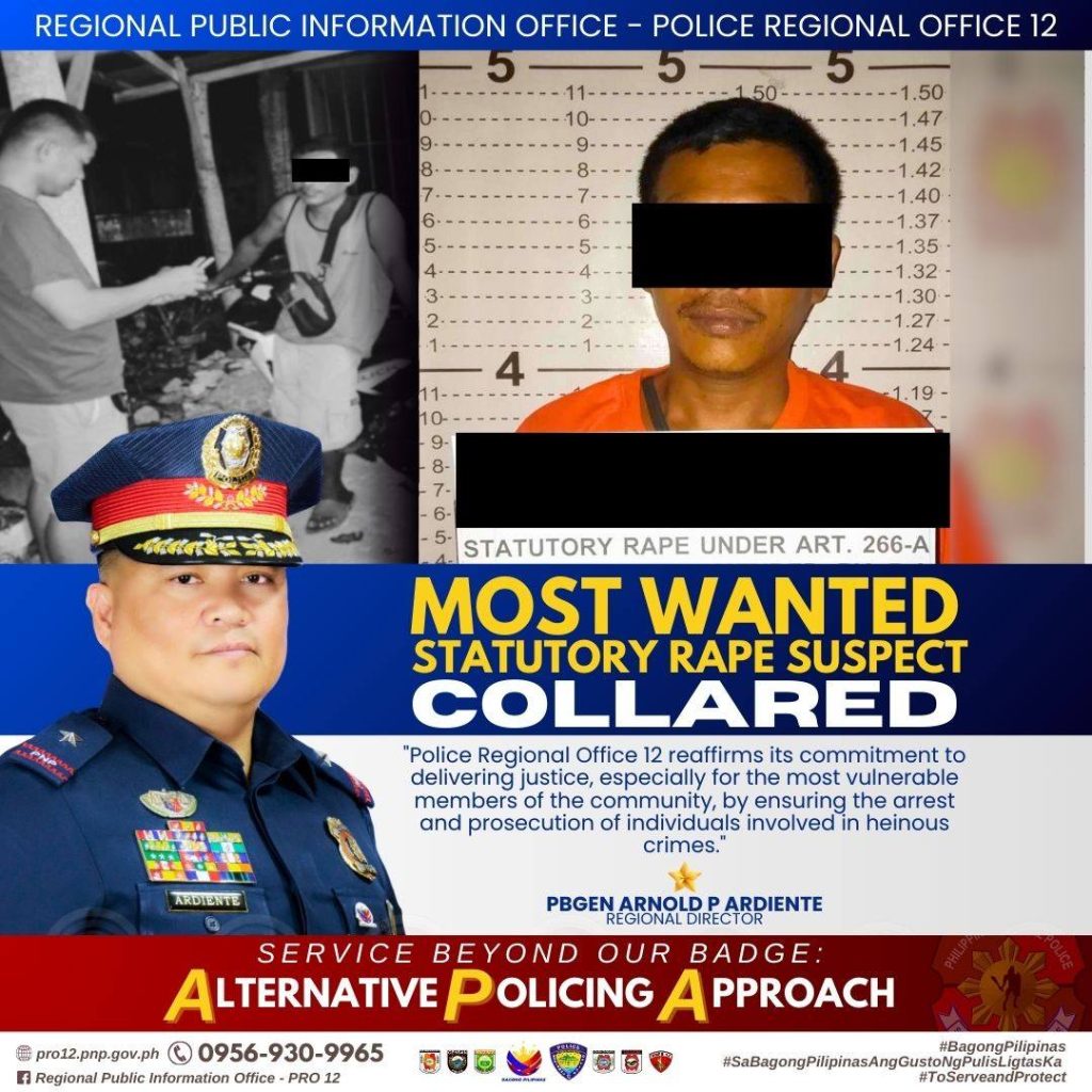 In a single day of relentless pursuit, authorities under the Police Regional Office 12 (PRO-12) successfully arrested four of the region’s most wanted individuals, all charged with rape and other sexual offenses, during separate police operations conducted on April 10, 2025.