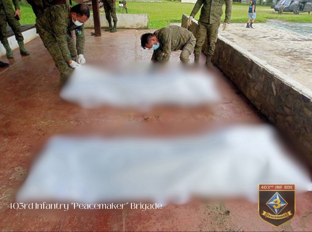 The firefight resulted in the death of two CPP-NPA Terrorists (CNTs)—an unidentified male and female. Soldiers also seized five high-powered firearms, along with subversive documents and other war materiel.