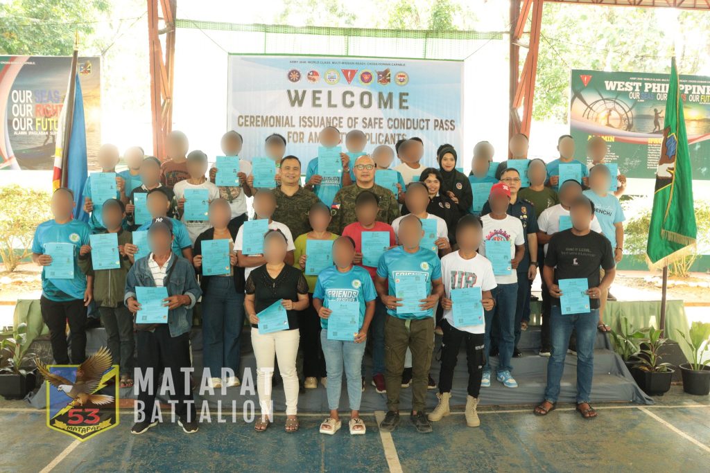 GUIPOS, Zamboanga del Sur — In a significant boost to the government’s peace and reconciliation drive, the 53rd Infantry (MATAPAT) Battalion of the Philippine Army, under the 1st Infantry (TABAK) Division, ceremonially issued Safe Conduct Passes (SCPs) to 40 Friends Rescued (FRs)—all amnesty applicants—on January 21, 2026 at Camp Major David P. Sabido, Battalion Headquarters in Poblacion, Guipos.