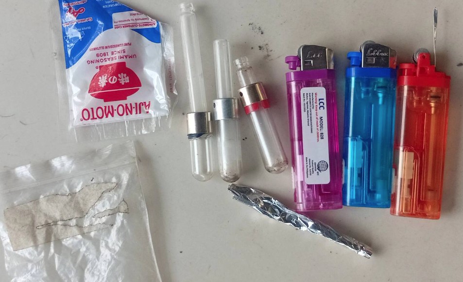 Seized from the suspects were a sachet of suspected shabu concealed inside a monosodium glutamate (Ajinomoto) packet, two aluminum foil strips, one disposable lighter with needle, an aluminum roll used as a tooter, two disposable lighters, three all-weather glass tooters, and a small ziplock containing marijuana leaves with stalks.
