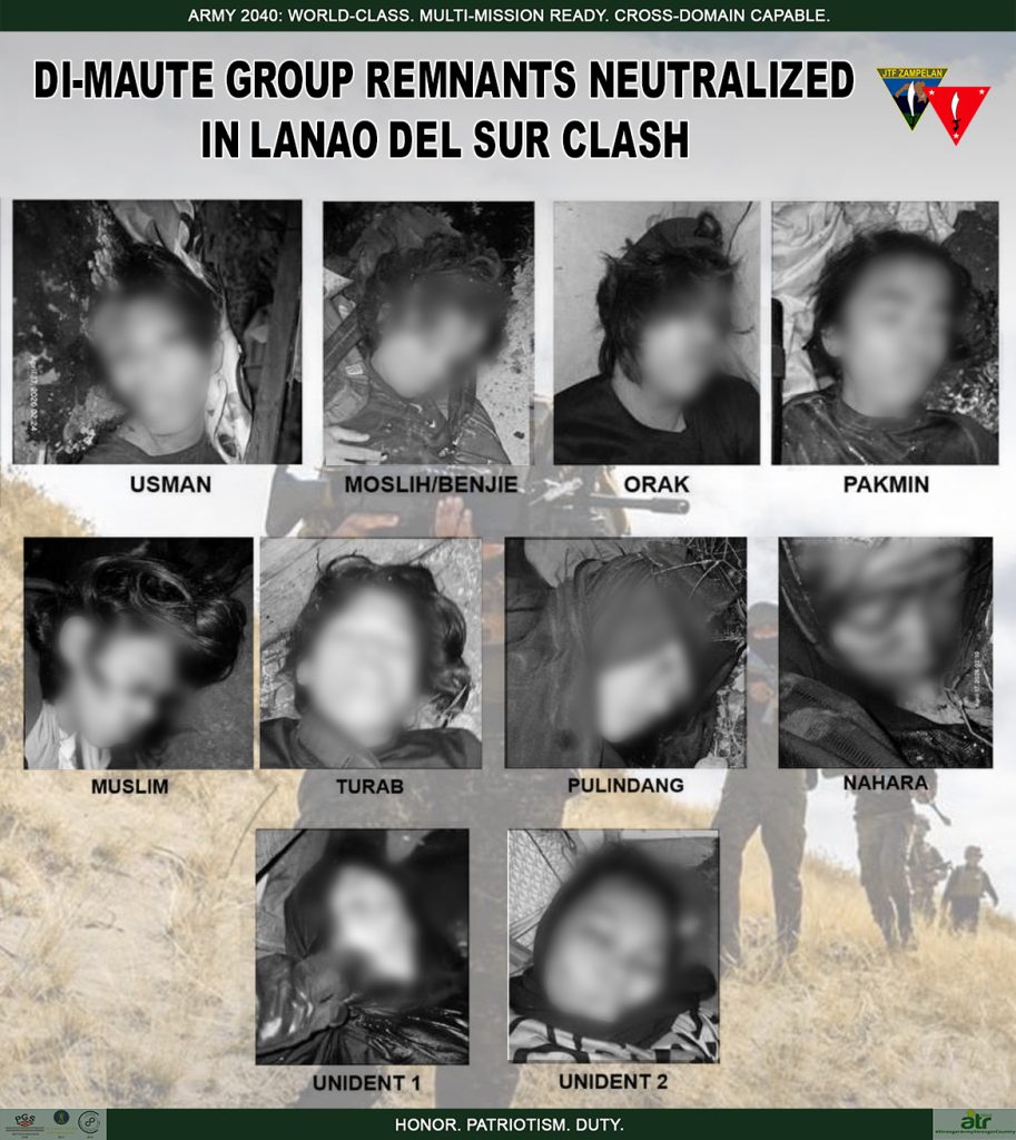 “Today marks a defining chapter in our campaign against terrorism in Lanao. The neutralization of the DI-Maute Group’s top leadership, the same network responsible for the Marawi siege and years of violence, demonstrates our unwavering resolve. This is not merely a tactical success; it is justice served for every fallen soldier, every grieving family, and every community that suffered under terror, including the victims of the Munai ambush,” Barroquillo said.