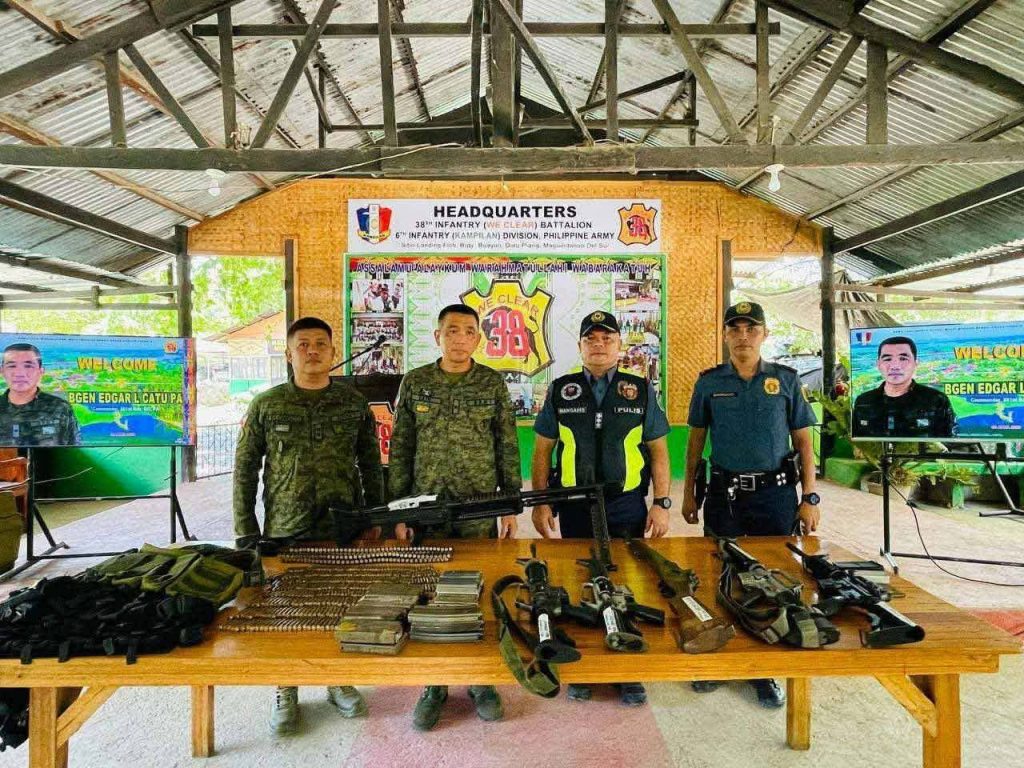 DATU PIANG, Maguindanao del Sur — Government forces seized six high-powered firearms in a joint military and police operation Saturday afternoon, April 4, following a tense armed confrontation earlier in the day that displaced civilians and heightened security concerns in a remote village.