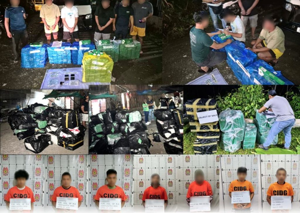 In a series of coordinated operations conducted on April 27, 2026, CIDG Provincial Field Units across Davao Region arrested seven suspects and confiscated a total of ₱2,015,000 worth of alleged illicit cigarettes lacking required graphic health warnings and evading proper tax payments.