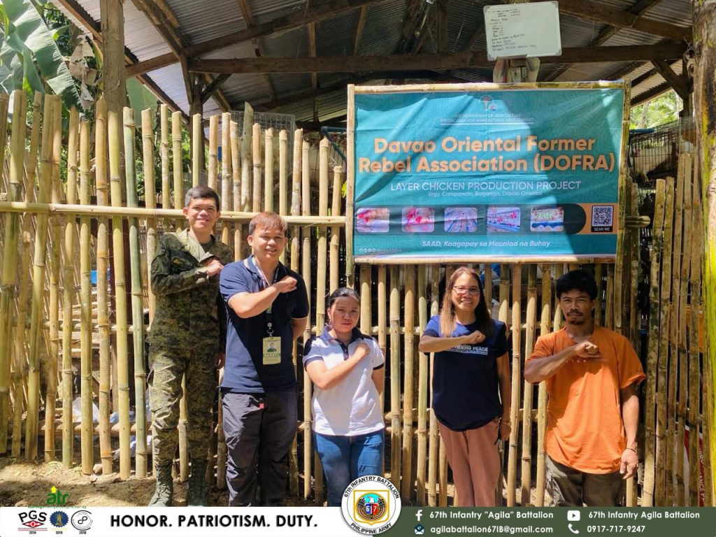 A total of 375 ready-to-lay (RTL) chickens were recently turned over to members of the Davao Oriental Former Rebels Association (DOFRA) in Barangay Campawan, marking a significant step in the reintegration of former rebels into civilian life. The initiative, supported by the Community Development Team (CDT) of the Philippine Army’s 67th Infantry “Agila” Battalion under the 10th Infantry Division, underscores a broader effort to transform lives through sustainable livelihood programs.