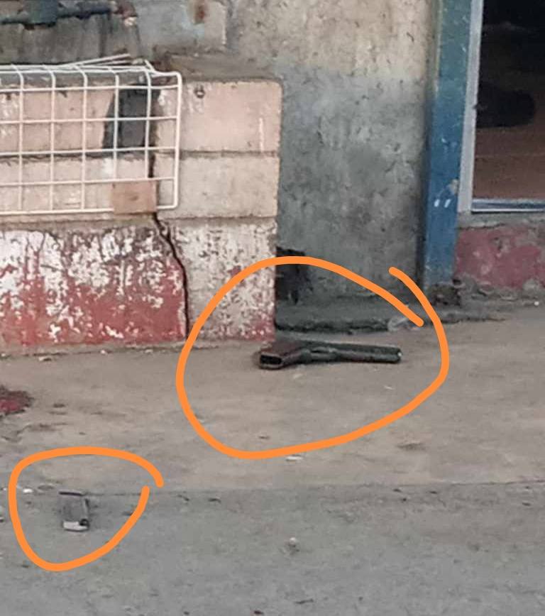 Crime scene investigators recovered a .45 caliber pistol believed to have been used in the shooting, along with a helmet left behind by the suspect—potentially a crucial piece of evidence that may help identify the assailant. Authorities are currently verifying whether the firearm belongs to the suspect or was used during the confrontation.