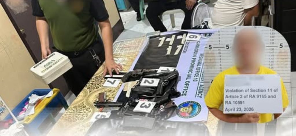 MAMBAJAO, Camiguin — A 43-year-old retired military personnel turned businessman was arrested during a joint anti-drug and law enforcement operation that led to the seizure of illegal drugs and a cache of firearms on the evening of April 23 in Barangay Magting here.